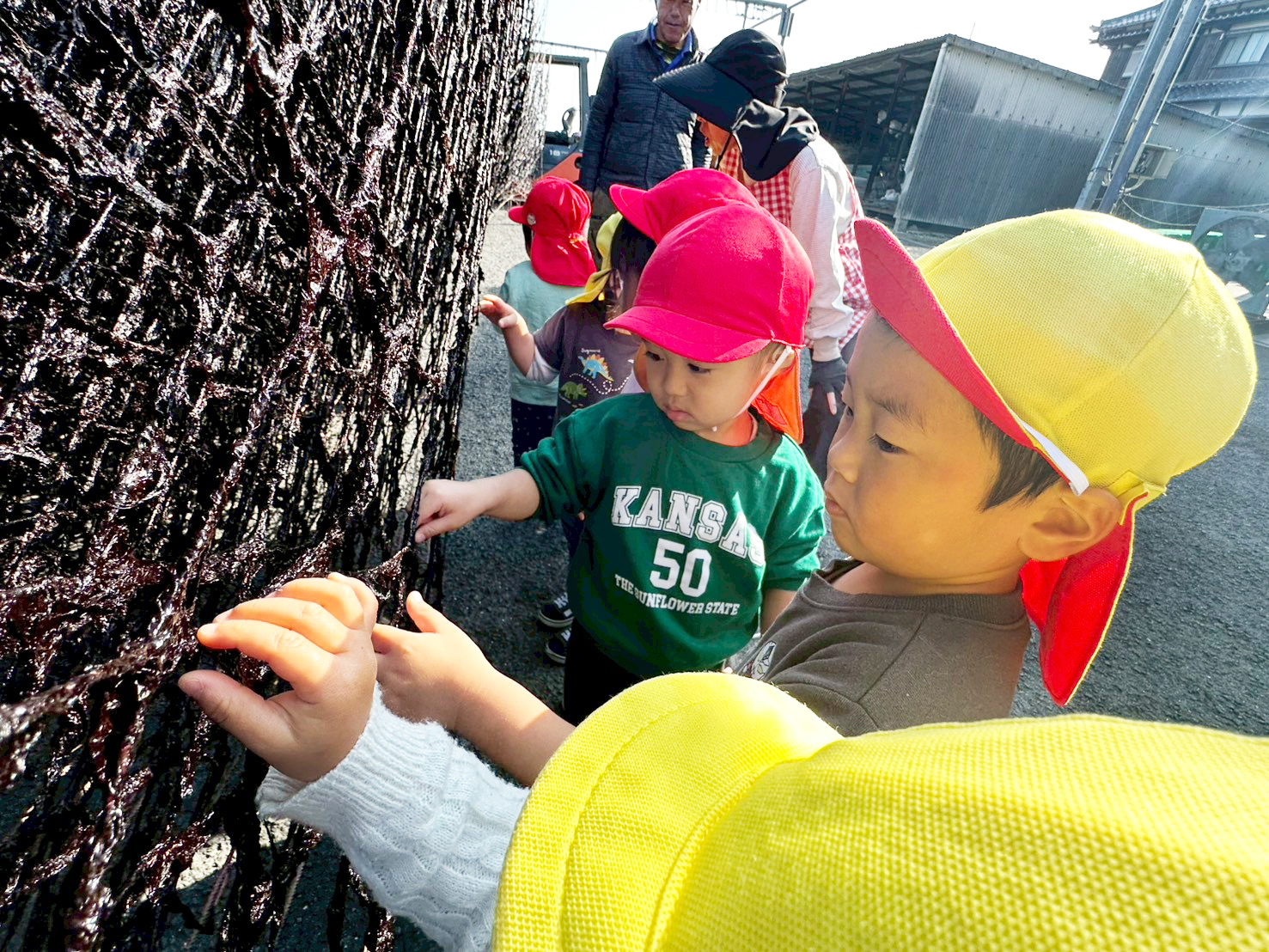 七浦保育園では、海苔の種付けや海苔すきを体験し、海から食卓へ届くまでの過程を学びます。